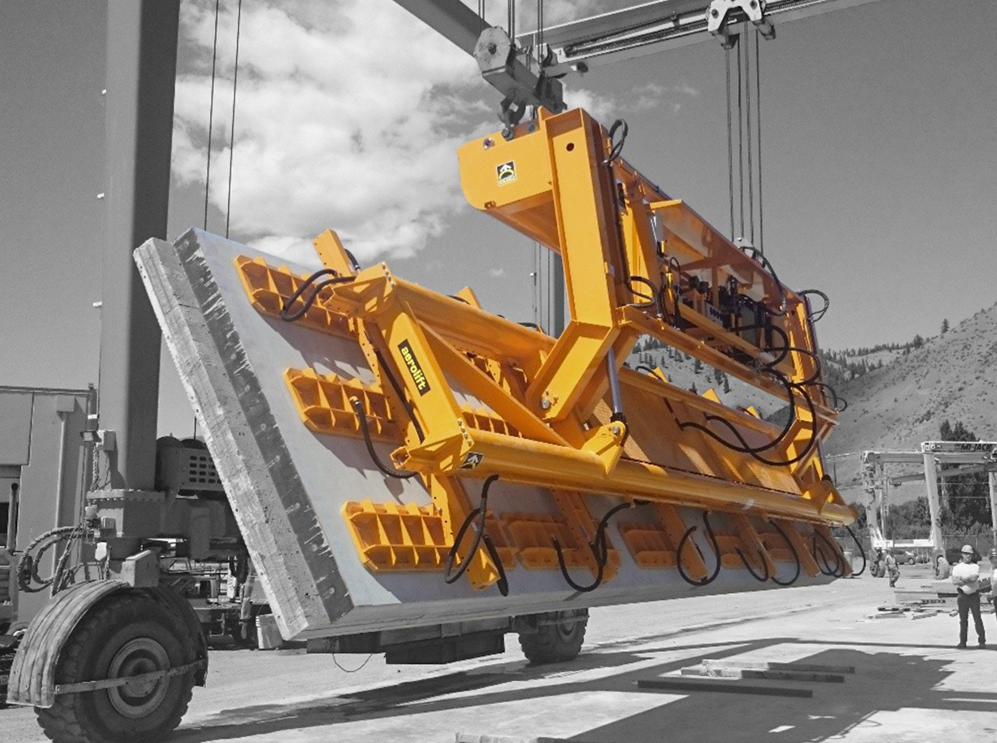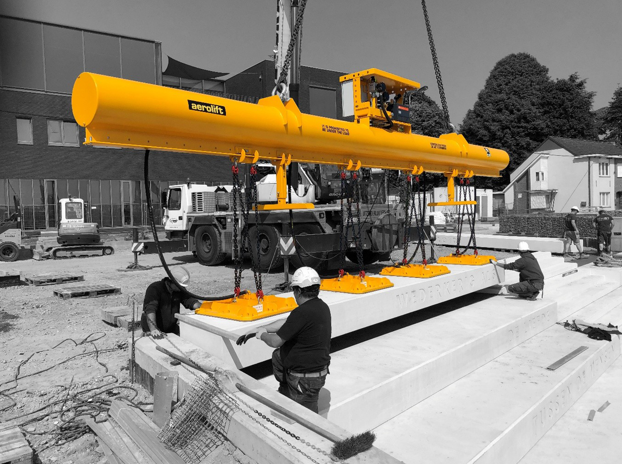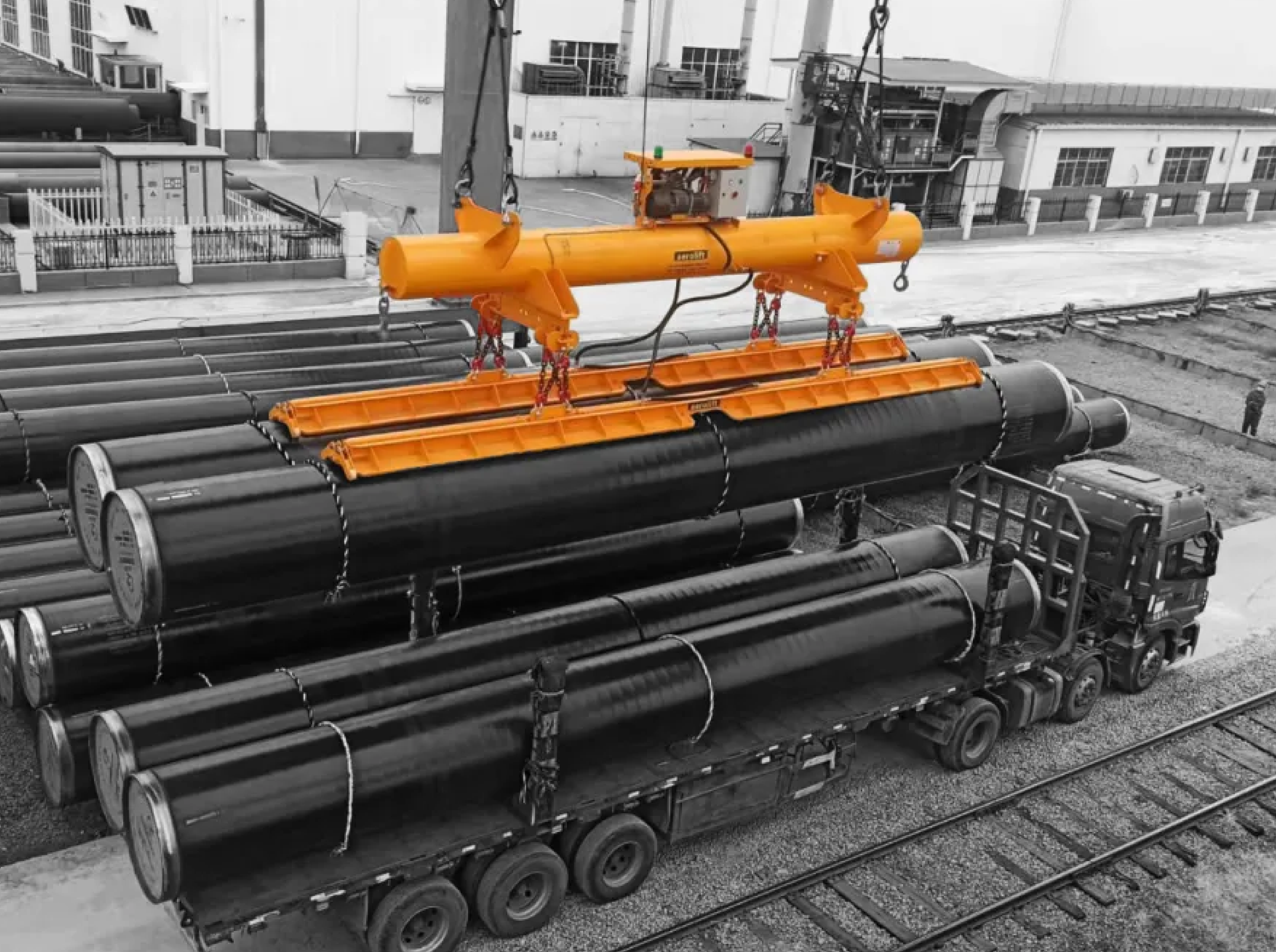 Aerolift ES–Serisi Vakumlu Kaldırıcı sistemleri, prefabrik beton, sac levha ve boru gibi ürünlerin yüzeye zarar vermeden kaldırılmasına olanak tanır. Yumuşak kauçuk pedler, yüklerin çizilmesini veya deformasyona uğramasını önler.